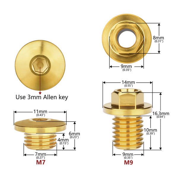Wanyifa Titanium Bolt M7x4mm M9x10mm Road Bike Schaltung Oil Bleed Bolt Hose Locking Bolts Bicycle Oil Injection Hole Screw Oil Pipe Hose Lock Screws for Shimano R7020 R8020 R8070 R8170 R9170